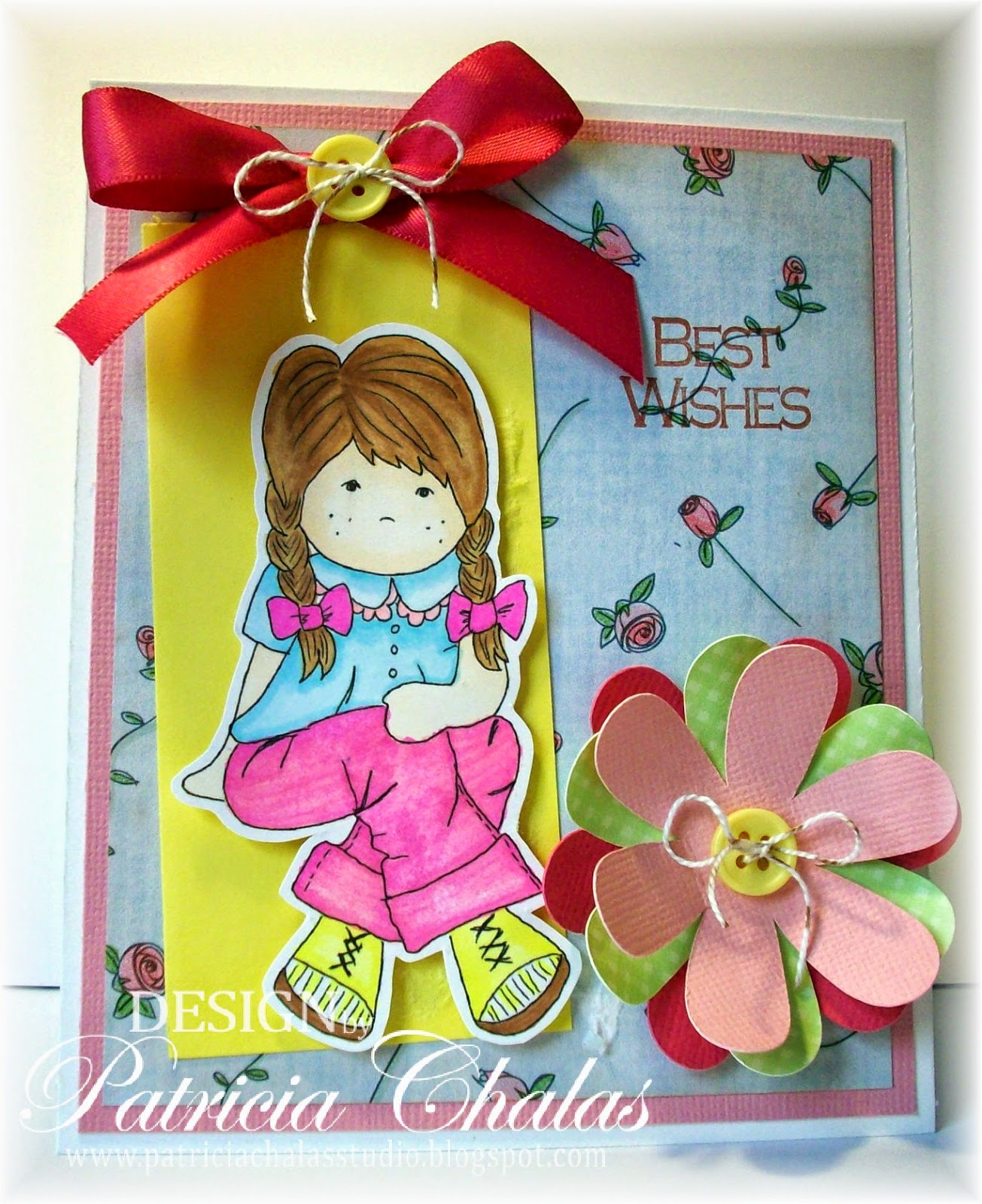 paper and the Amelia Digi, combined them with some pink and gingham papers from Cherryblossom Lane CD collection which I die cut to make the 3 colored flower, I