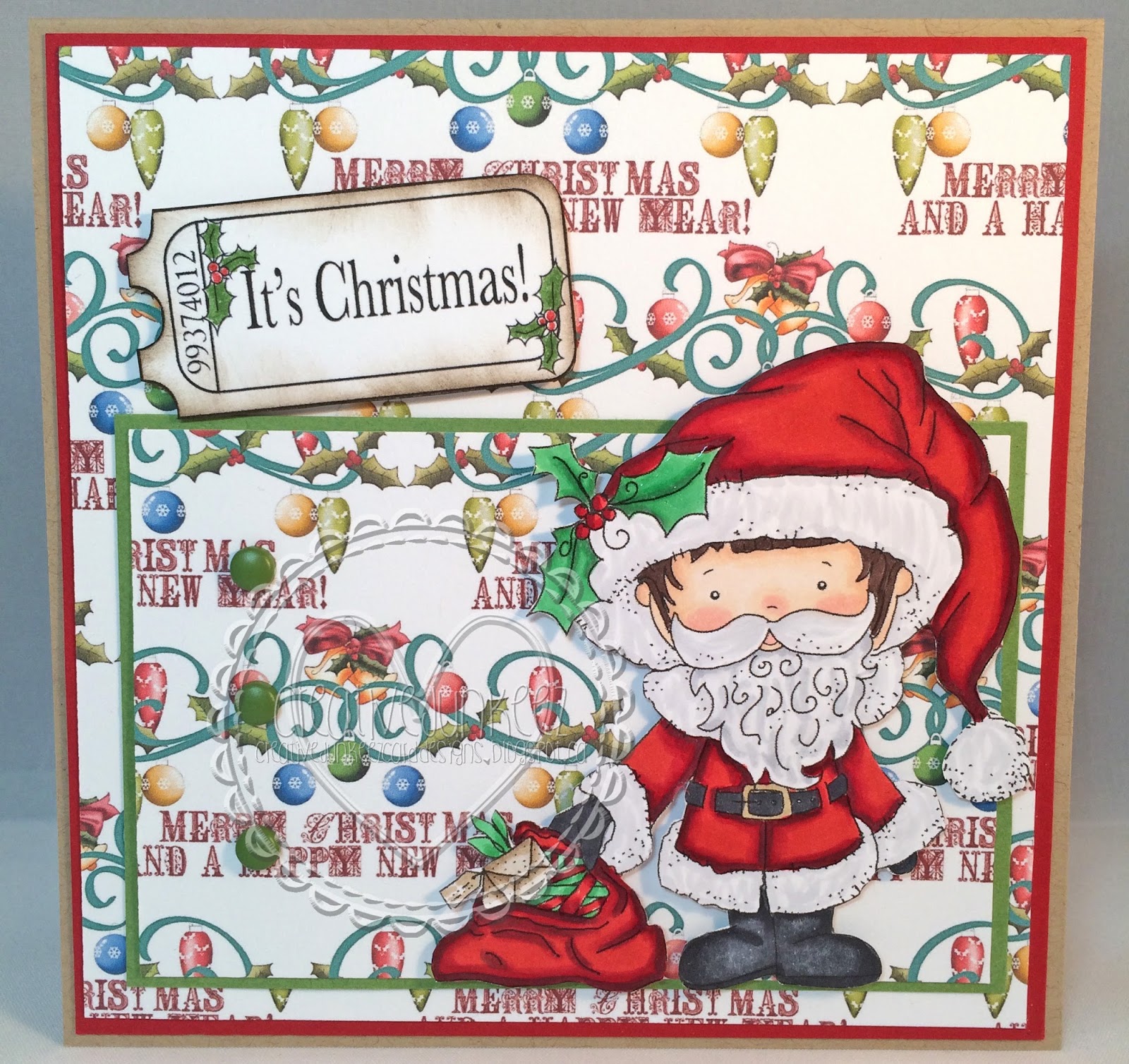 Nikki - My Favourite holiday is literally around the corner and I am so excited. My inspiration card for the XMAS challenge is using the "Santa" image, digital papers and sentiment from the Work and Play 5 Festive Hollybobs set. You ca get the whole set either in CD or Instant Download OR if you are single type of guy or gal, you can find it here! My image was inked with Copic markers. Hope you enjoy =)