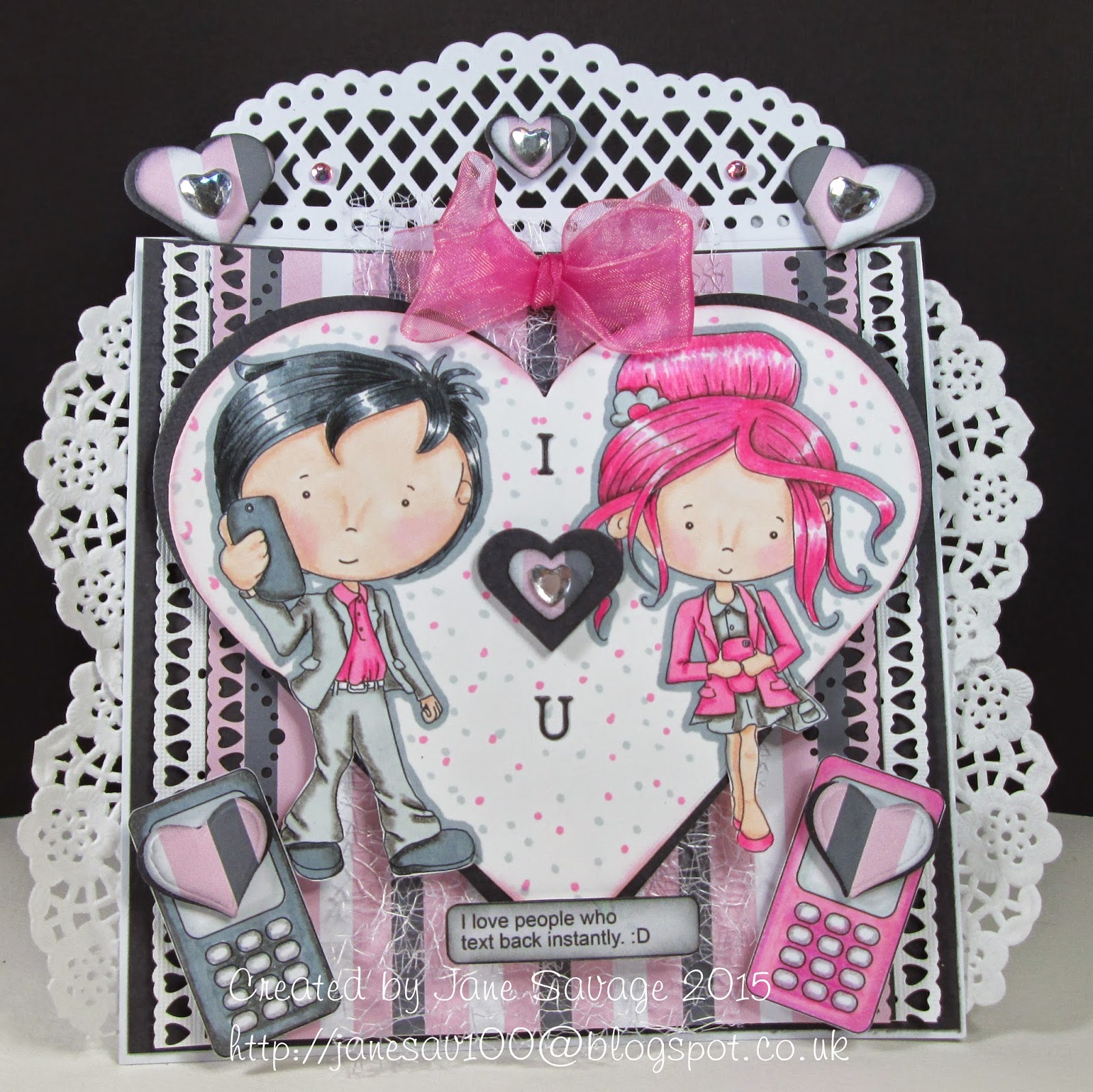 Caz For my creation i have used two pre coloured images. Boy Opera and Girl opera singers. You can also get them as digi's Girl here. and Boy here. .You can get these along with the papers Ive used, also the bow, and sentiment, on the fabby new Work & Play 8 cd available here. The hearts are punched hearts..
