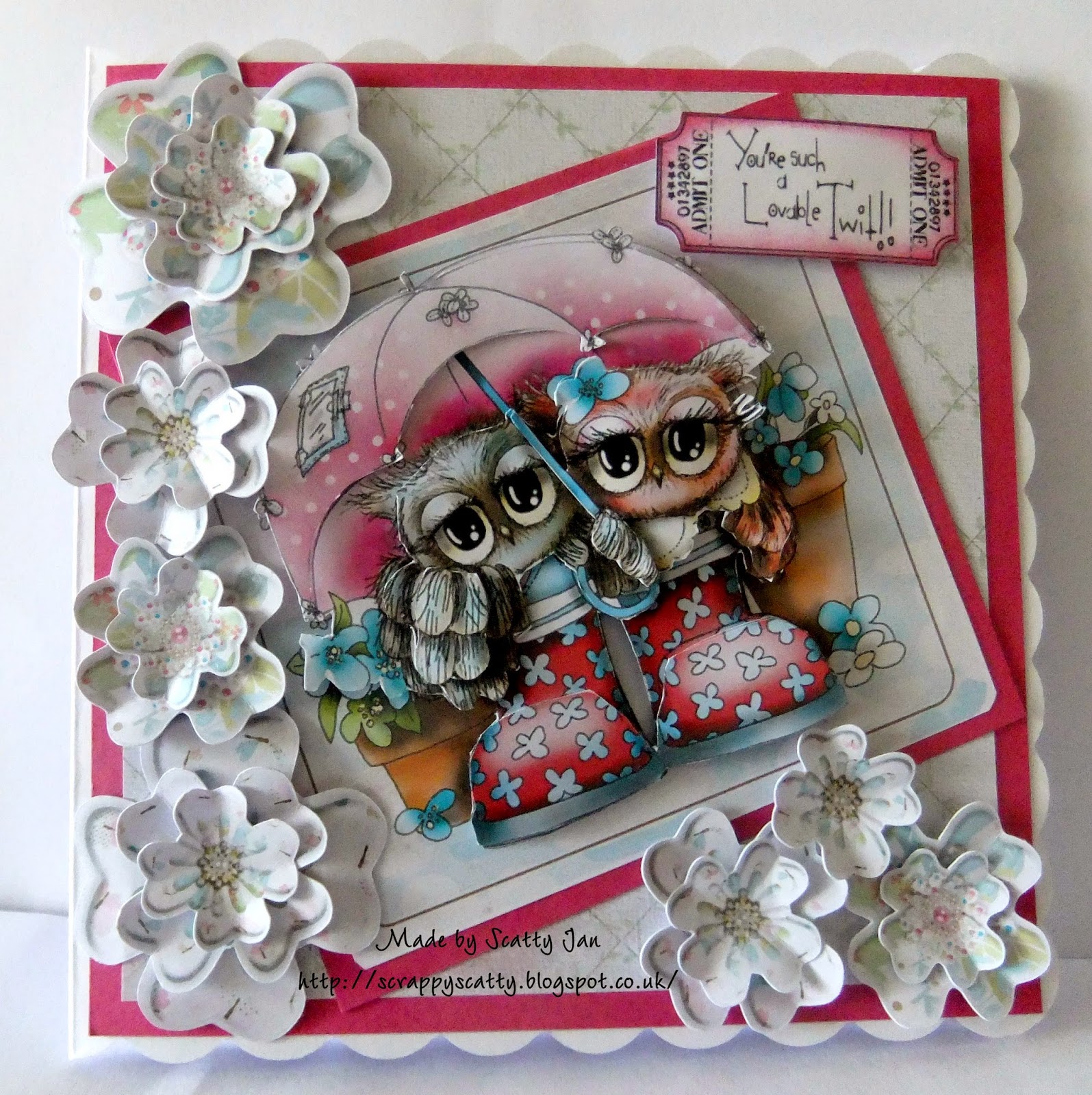 Scatty Jan Oh I soooo love this new collection Twiggy and Toots CD also as a download here - I have used a lovely design sheet, such a wonderful idea , all the bits you need on one sheet. Adored the lovely bright colours on this one. The lovely sentiment from same collection