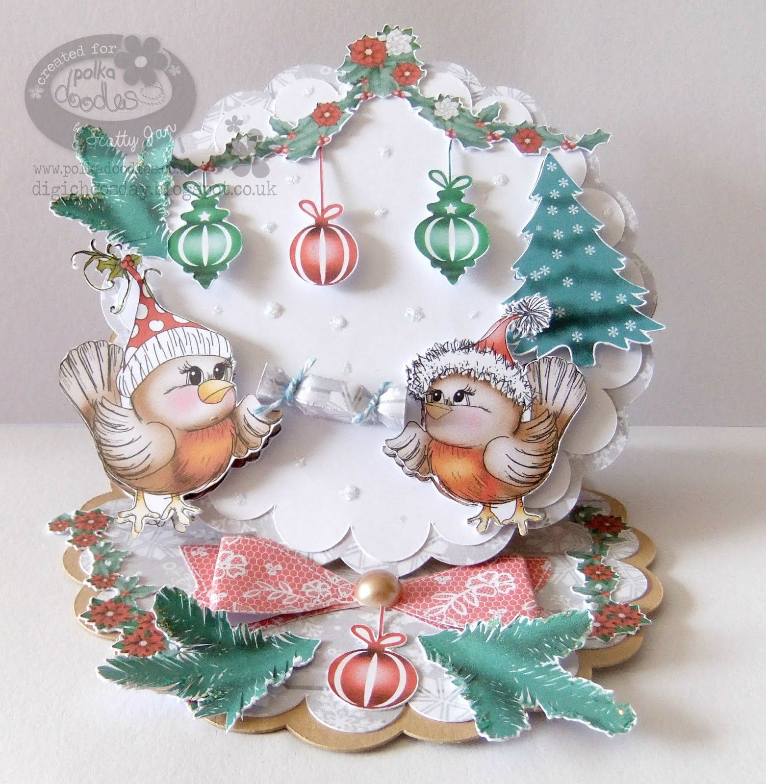 Scatty Jan For my Embelish it card I decided to use the wonderful Twiggy and Toots Festive collection. I love using this collection it really is so much fun and there really is stacks to use on it. Everything on my card is from the collection all that was added was a sprinkling of Diamond stickles, a wee tiny cracker and a large pearl. If you love decorating your Christmas cards you just can not miss out on this collection, there really is something for everyone.