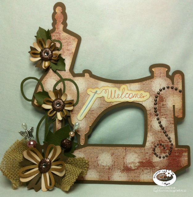 Monica.-For my project, I´m using cutting files. The dress form and the sewing machine are from Picknix1-All Sewn Up Dowload bundle, as well as the patter paper and the sentiment. I just weld both cutting files. For the flowers, I used another cutting file "Flowers 3"; and for the vines and leaves, I used "Ivy 1".