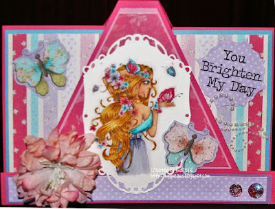 Anjie - I decided to use this image that I have had coloured up for a while, it is the Gymnast or ribbon twirling girl. She is also available as part of the Work and Play 11 collection which you can get as a digi download or CD. I coloured her with my Prisma pencils when I had just got them for practice. The papers are also from the same collection as are the flowers and the borders.