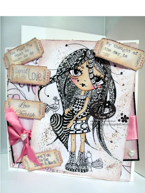 Tanya...For this week's challenge I've used lots of the lovely sentiment tickets from the Work & Play Love collection and papers from that collection too and I've zentangled one of the Icky Inks Oddella images called Oddella Heart available here. Hope you like it.