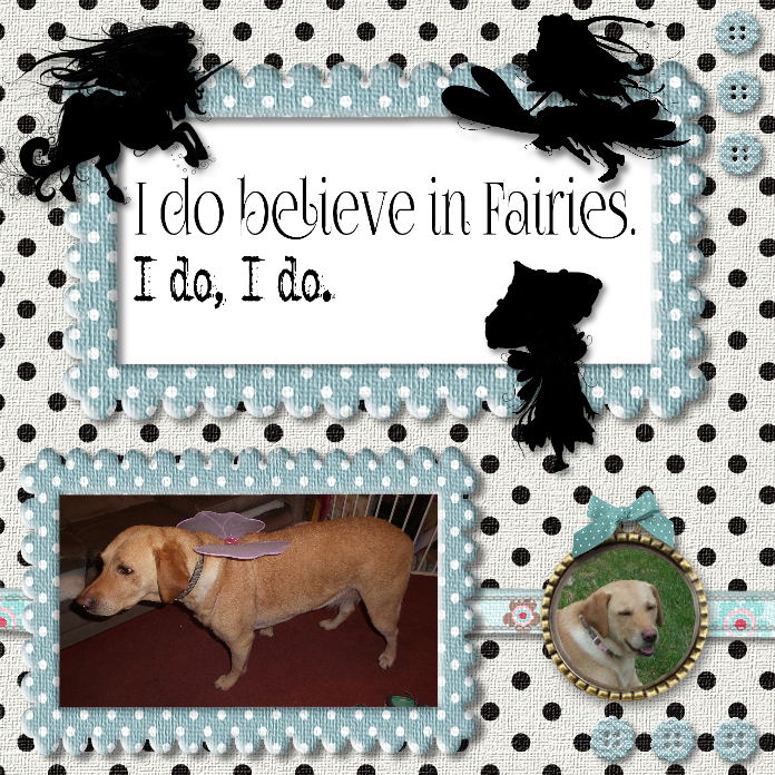 Wendy - I love this sentiment from the Octavia Moonfly collection and had a picture of my dog, Kayla, that suited it perfectly so decided to do a scrapbook page.This has been made 100% digitally using Craft Artist. The shadow of the fairies, which are the pre-coloured images from the same collection, have been changed to silhouettes, again using Craft Artist. All the embellies are also from the Octavia Moonfly. Several of these elements are available in smaller kits too on the Octavia page.