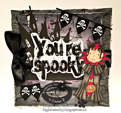 Emma - For my 'Feeling Sentimental' card I have used the awesomely spooky new Halloween collection. I have used the 'You're Spooky' sentiment as the main focus & have added the spooky house & skull banner that you can find it Here I have coloured up Dracula using Copics & you can find him Here. Both of the papers can be found in this fab bundle Here