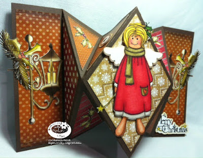 Monica.-I really feel confortable with this colour combo. I love it!!! I made a diamond card to pop out this beautiful gingerbread angel in such gorgeous colours. I used one of my favorites collections, Picknix 2 Gingerbread Twist.
