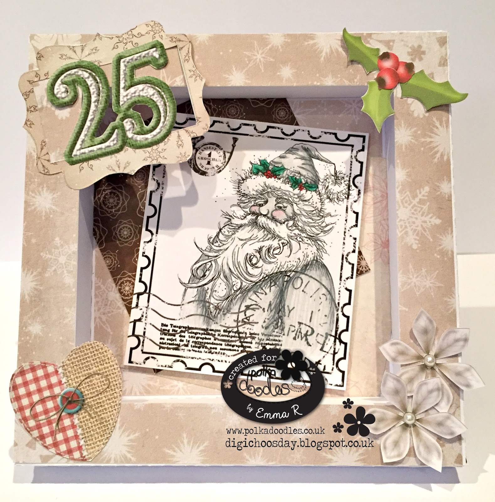 Emma - For my Anything Goes card I have got out the Nordic Winter collection again & have made a box frame card. I have used the Santa image & have coloured him up using pencils. All of the papers & embellishments are in the full collection that can be found Here