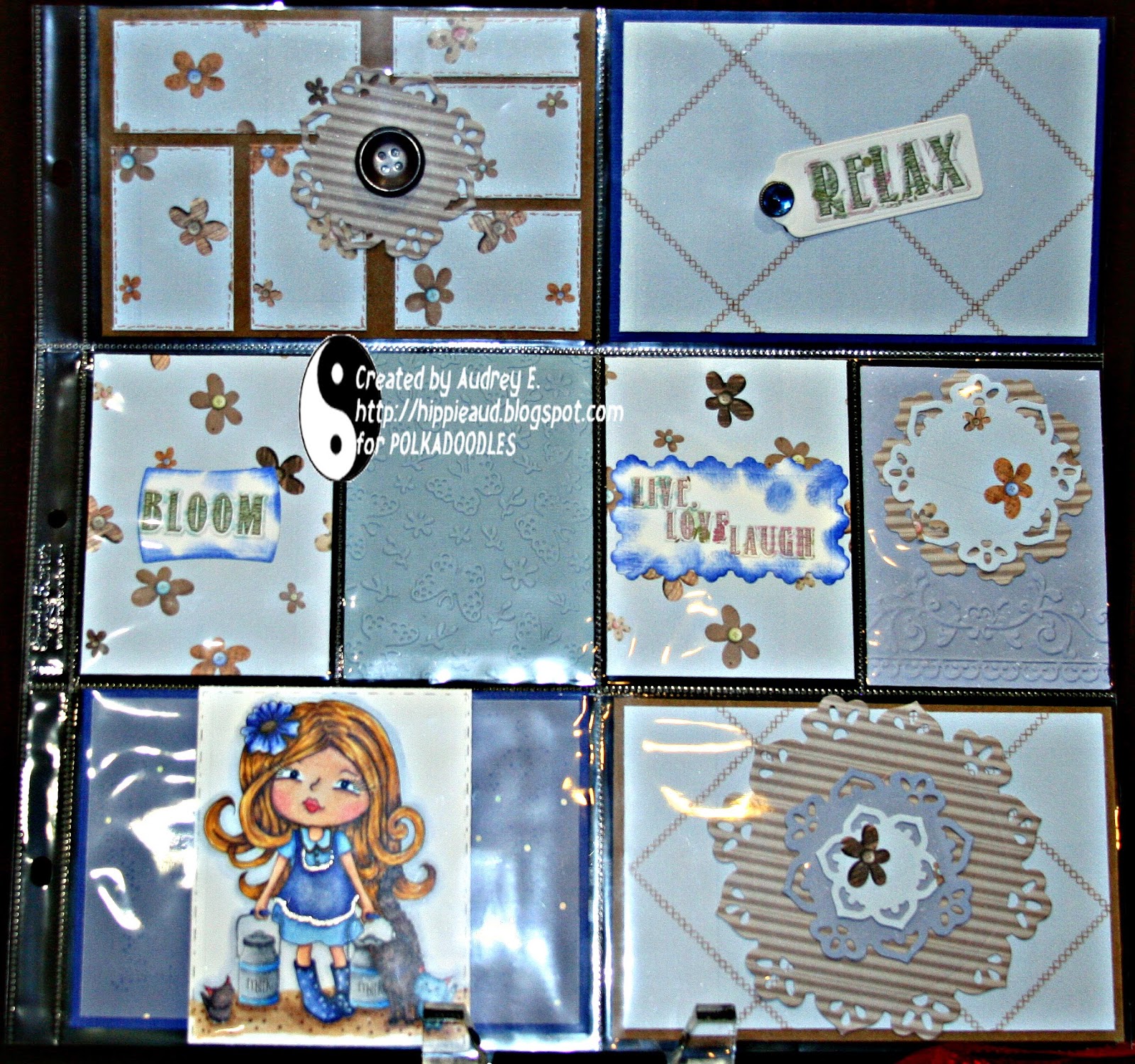 Tanya - For this week's challenge I've done some zentangling in blue pen on the black and white digi called Serenity Earthstar available on a single digi in black and white and also in black and white and colour on the full Download collection and a CD collection. The papers and the sentiment are also from the collection and I've used Graph It Markers for the skin.