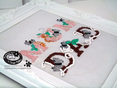 Tanya I have chosen to do some proper stitching by hand with threads and beads for my make this week and have used the alphabets available as a single download or on the wonderful Colour Therapy Collections called Florabunda and Inspiring Foliage and have made a framed picture for my mum and dad's wedding anniversary. More pictures can be seen on my blog.