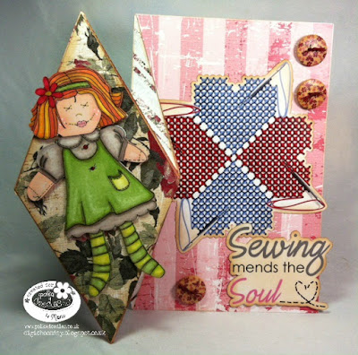 Monica-Since I was a little kid, I love cloth dolls. So this week theme was perfect for my favorites dolls. I found an adorable cloth doll digi, full of stitches, in Picknix 1.-All sewn up. I love this collection, it´s papers are stunning, sentiments are beautiful and the elements are just perfect for this challenge.