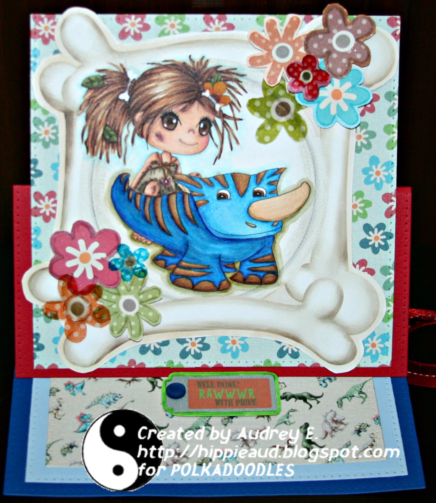 Audrey I love the brand new Sticks & Bones Mammoth Dinosaur Download Bundle from the moment I saw and of course had to buy the full download collection!! For today's creation, I chose the images called Just Sittin Here/Dinosaur and Sticks & Bones Dinosaur 5, which can be found in the full collection and in black and white on the Sticks & Bones Dinosaur Image Bundle. The papers are from the collection too. I've combined the with the frame using Gimp and coloured with Copics. The flowers can be found on the collection too and also here . Full details of how I printed the flowers out can be found on my blog. I sure hope you like it, I know you will love this new bundle!!