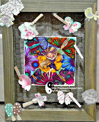 Audrey used another coloring page this week, choosing a page from Adult Coloring Pages Bundle 5 for my background and then I merged Serenity Joyful Digi Stamp into the center of the page using Gimp. I added sentiments and embellies (flowers, butterflies, bird and mushrooms) from Twiggy and Toots Owl Full Download Collection. I found this chicken wire frame at my local craft shop and thought it would make a perfect Mother's Day gift for my mom because she can hang it on the wall and look at it all year long. Hope you like it!
