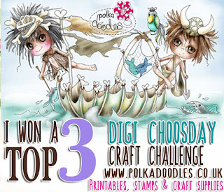 Basically we will be awarding Special Feathers to our favourite Top 3 entries that use a Polkadoodles image and you will be entered onto the Feathery League Board - this is so fun, so check out the RULES on the tab at the top of the page HERE - you even get a Feathery badge if you're awarded a feather!