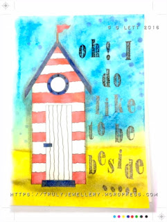 Gail - Roll on the sunshine!! For the 'Think Summer' I choose a beach hut digi stamp from the Sundae of Seasons CD collection, to create an page in one of my art journals. Apologies if you are now singing along :)