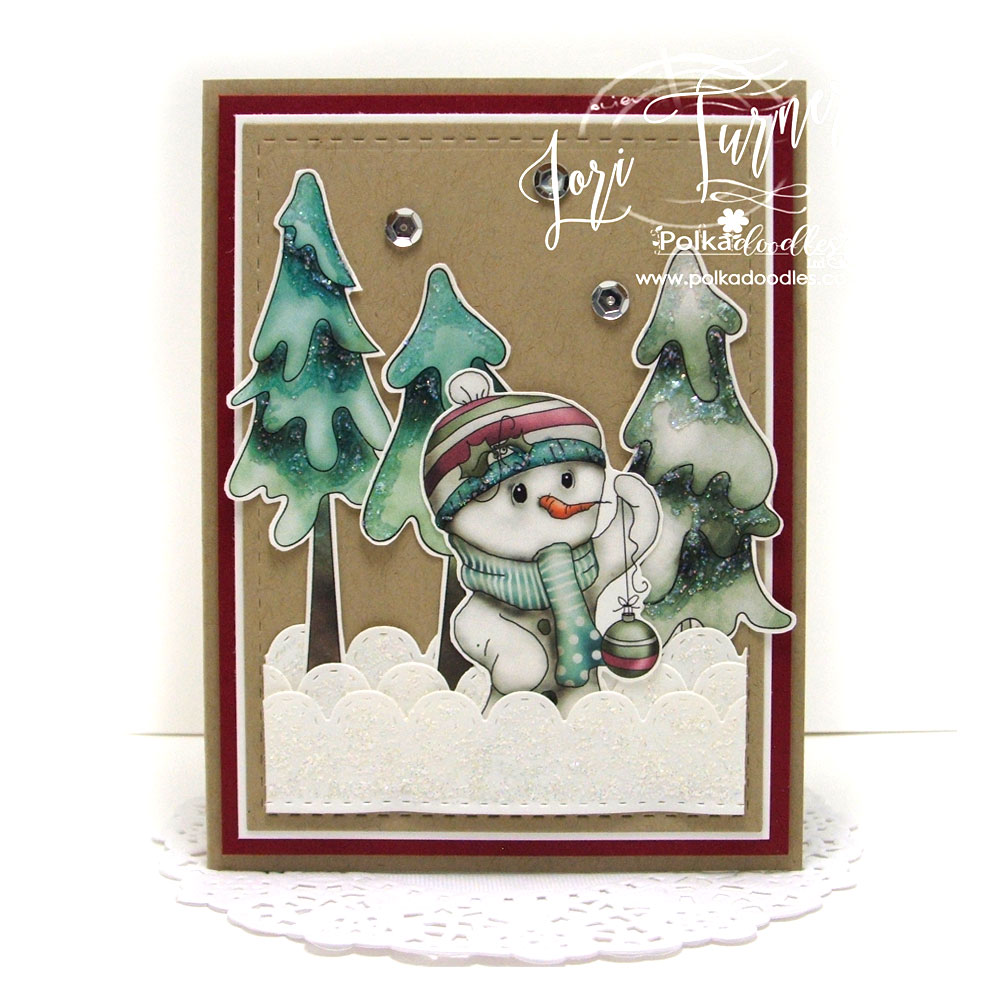 Lori - For my card this week, I chose to print off some adorable, whimsical, images from the brand new download collection called Winnie Winterland. I fussy cut them out and layered them onto some Kraft cardstock. Some were popped up with foam tape. I then added some glitter to the trees, snowman and snow....