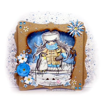 Julie - Today I have made a cute little Christmas Tree shaped card, using some of the new dies and an image from Winnie Winterland, coloured with Copics.