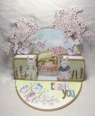 Monica.-This week card is a little bit different step card made with background, papers, embellishments, letters and precoloured images from my beloved Cheryblossom Lane Collection.
