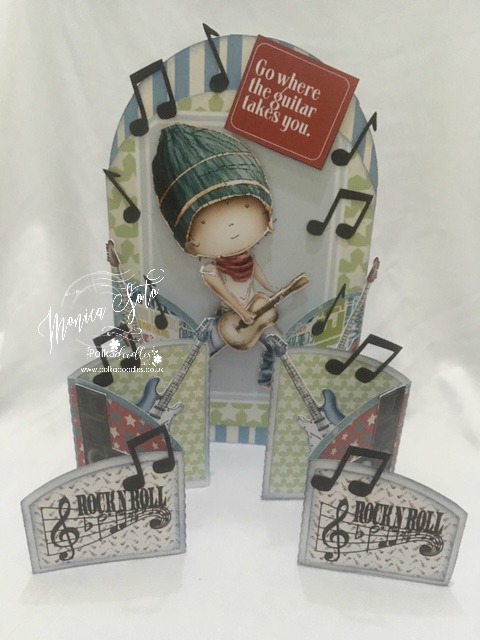 Monica - It´s always easy to craft with Polkadoodles design sheets. For my card I used design sheet 02 from Work & Play 8.-Feel the Music Collection. I love this design sheet because the image is already broken in pieces to make decoupage and I really like the dimension I got for my project.