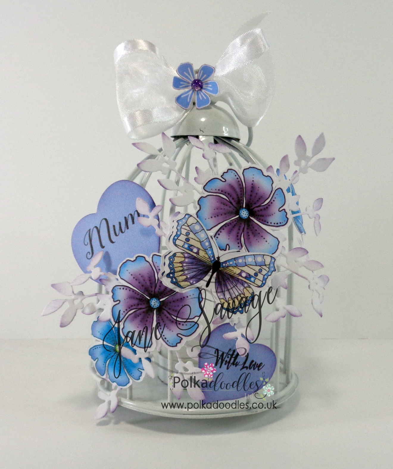 Jane S - For a Mother's Day gift I decorated a little birdcage with gorgeous elements for the Lavender Tea Collection and the fabulous and must-have Super Sprigs dies.