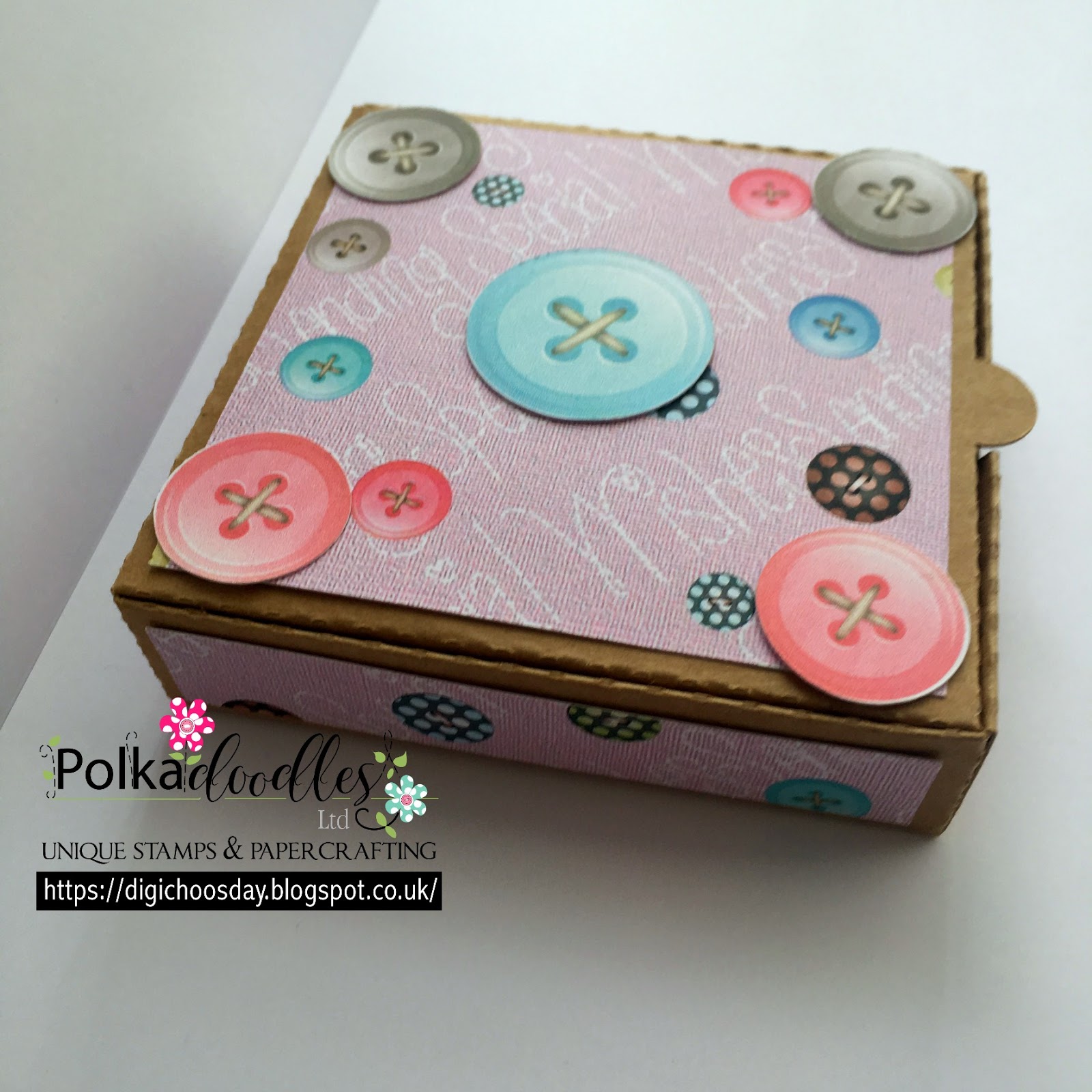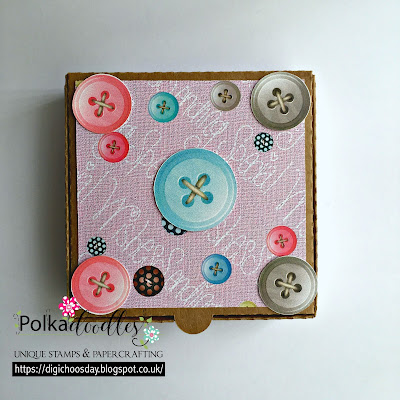 Yvonne - I used a paper from the 'Winston' Collection and used it to decorate a cute little pizza box. I cut out some of the ephemera buttons from the collection too for added decoration.....