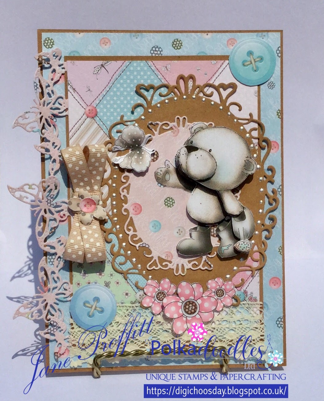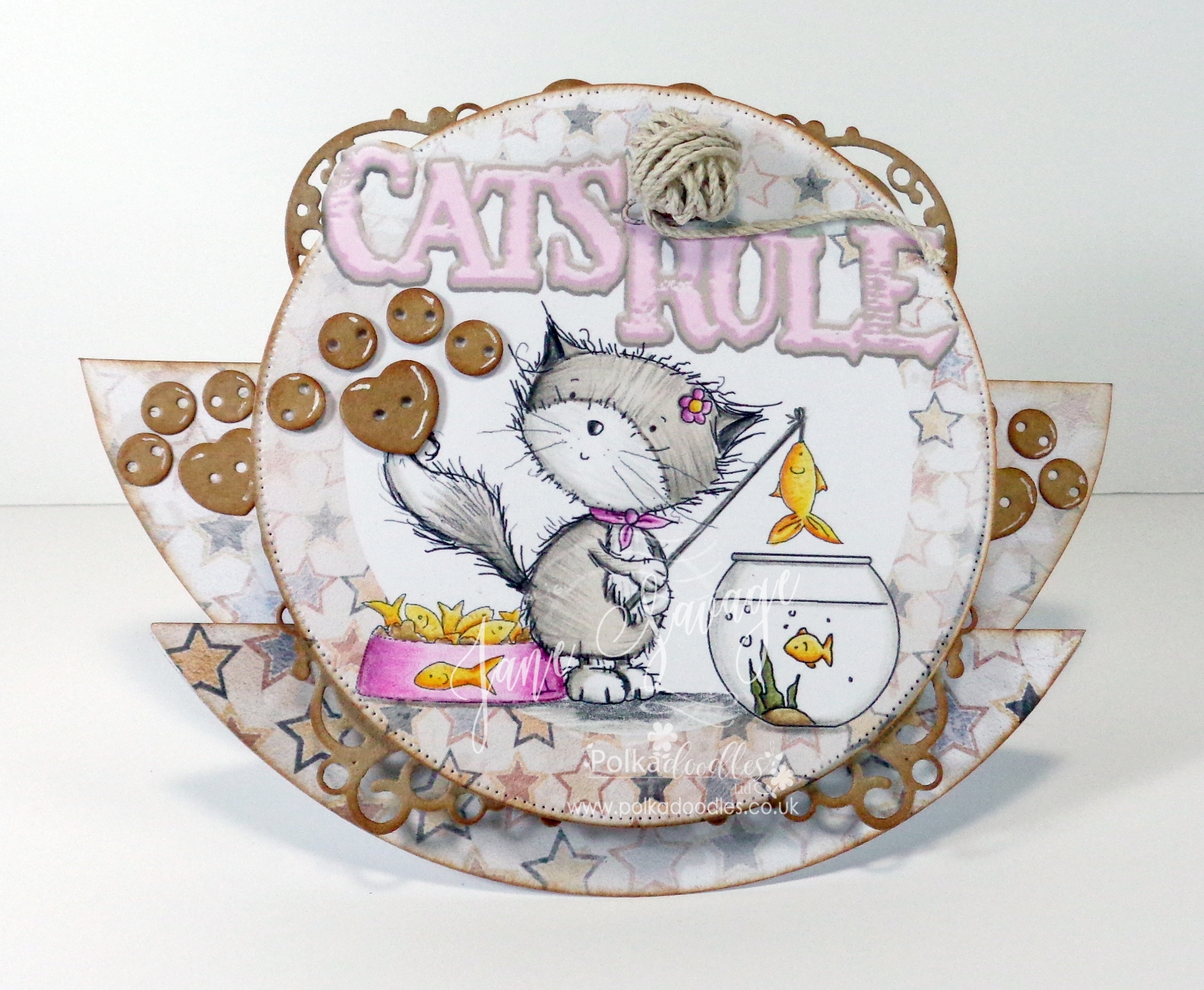 Jane S - I have also used the Horace & Boo Collection merging some of the digi stamps onto one of the toppers to create a scene and colouring with pencils. I have also added a ball of string and some die-cut buttons that hopefully look a bit like 'paws'....