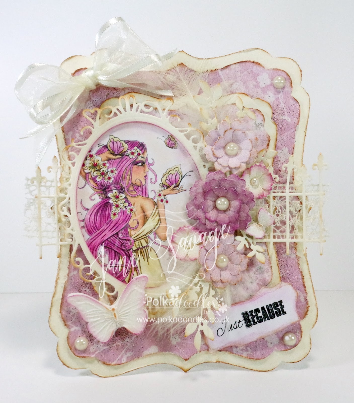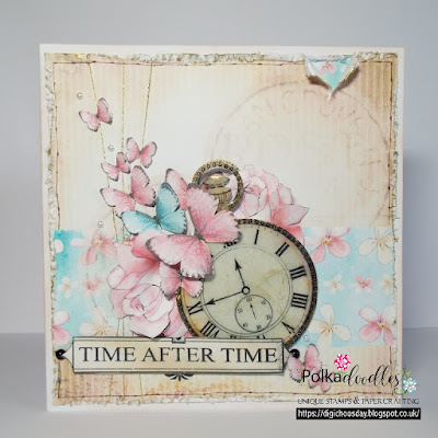 Jane S - I have used the uber scrummy Eden Collection for my shabby chic card and some of the awesome Polkadoodles die sets.Katrina ~ When I heard our theme was Shabby Chic, I immediately thought Polkadoodles Belle Papillon. So many lush patterns and colors perfect for this week! My project includes a tag from Belle Papillon Amazingness, Flowers from Work and Play Collection 12, Butterfly from Helga Design Sheet, and the green flower vine is Flowers 2 Cutting File.