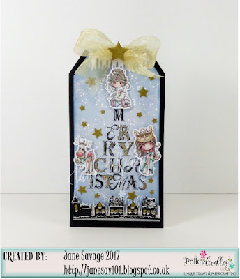 Jane S - I have used one of the fabulous Christmas sentiment stamps, stamped directly to digi paper adding pre-coloured images shrunk to about 3cm high to 'sit' upon it! These are all from the stunning Winnie Winterland Collection.