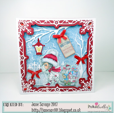 Jane S - I have used one of the gorgeous new Winnie White Christmas images and a paper and tag sentiment from the Festive Christmas Collection. I have also used some of the Polkadoodles die sets.