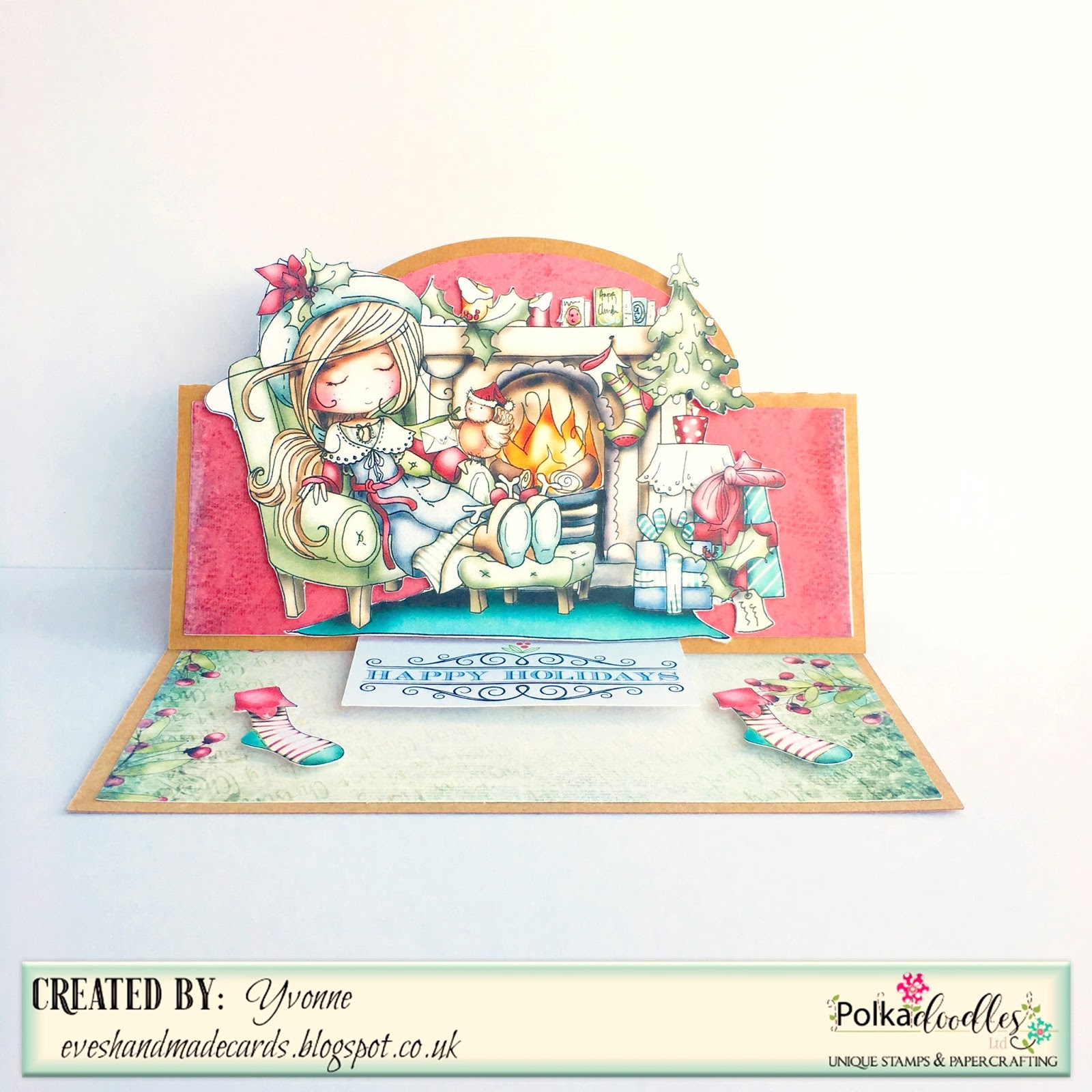 Yvonne - Hello! I decided to use Winnie Winterland - which is a fab collection and you can see the whole range here. I made a easel card using the pre coloured image called Cosy Christmas which is available as a pre coloured image on the main download collection, but if you want just the black and white digi - you can get this here. The papers are from the same collection, as is the sentiment and the little stocking embellishments.