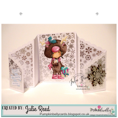 Julie - I have used an image from Winnie White Christmas to make a stepped accordion card, I kept it simple to showcase the lovely image which is coloured with Copics.