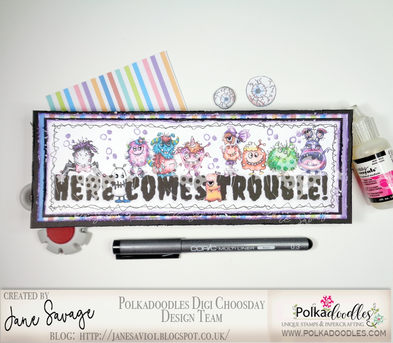 Jane S - My DL card uses the Little Monsters Collection. I used Word to add the wonderful pre-coloured characters to make them stand on the sentiment.
