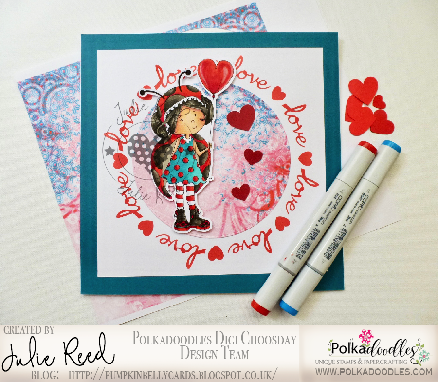 Julie Reed - I have made a Valentines card for my Hubby using Lily Bug Love Heart Balloon and papers fromWinnie Starfish & Sandcastles.