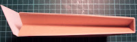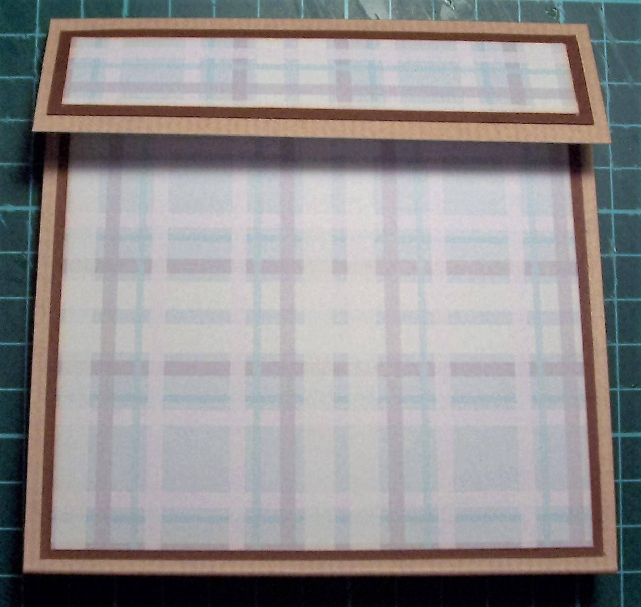 1. Cut card measuring 12 cm by 29.5cm and with the longest side facing you, score at 12cm, 13.5cm, 25.5cm and 26cm.  Fold in to a purse shape. Decorate the front of the wallet and the flap using contrasting plain paper and patterned paper as shown below: