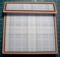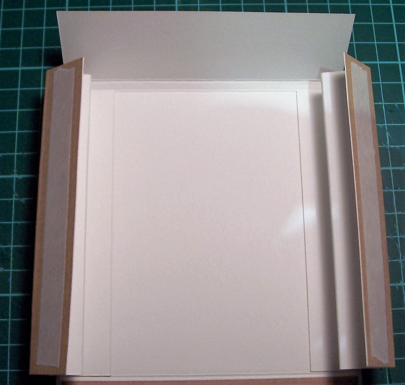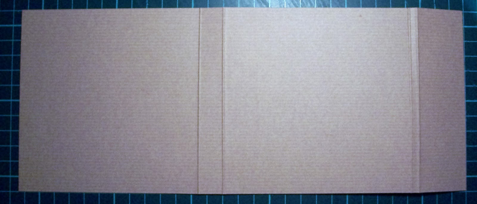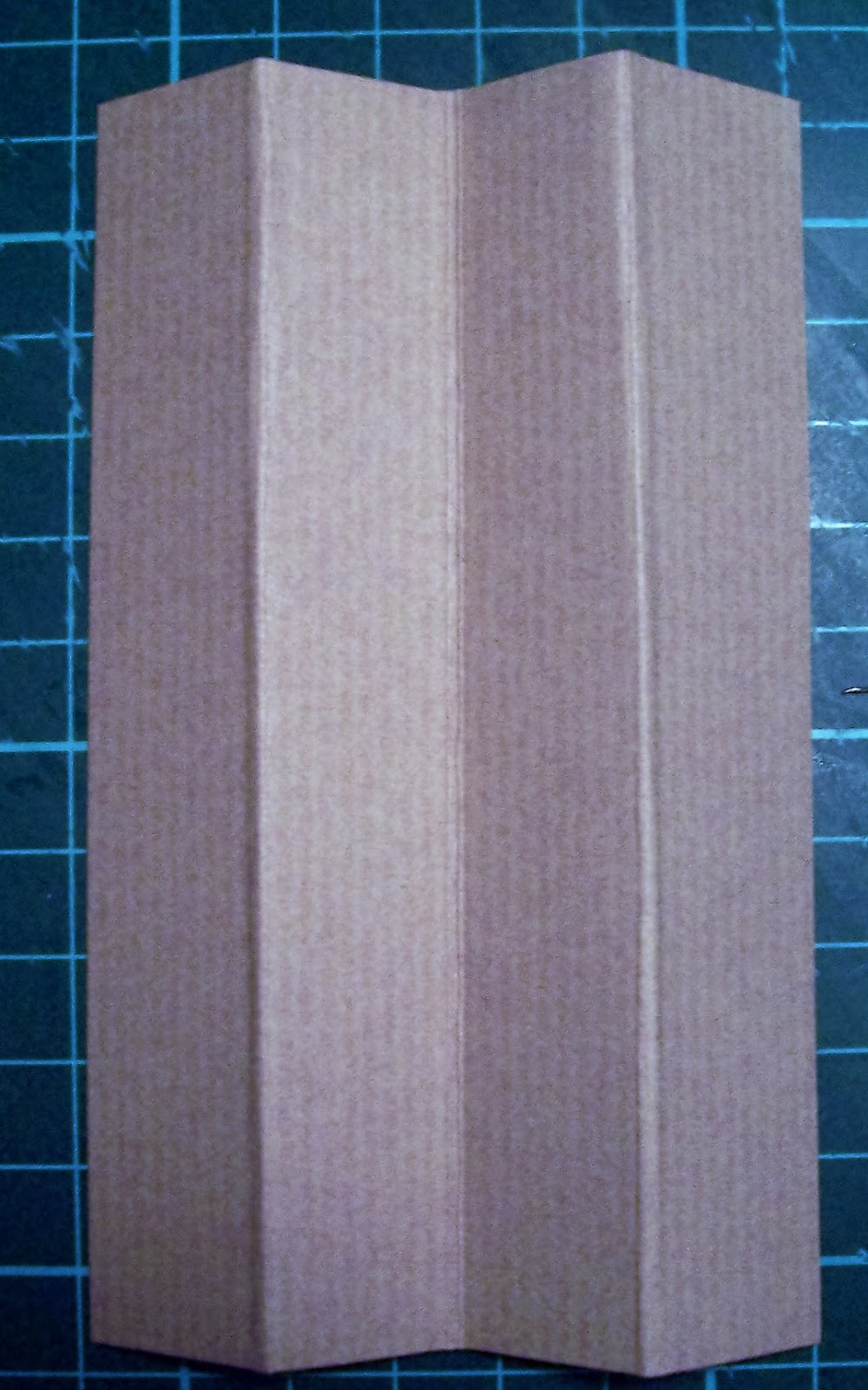 3. Cut two pieces of card measuring 12cm by 8cm.  With the shorter edge in front of you, score at 2cm, 4cm and 6cm and concertina fold.  Put double sided tape on the two outside panels of the concertina fold and attach one side to the inside of the wallet. Remove the tape from the other side and fold the wallet together to attach the two sides together.