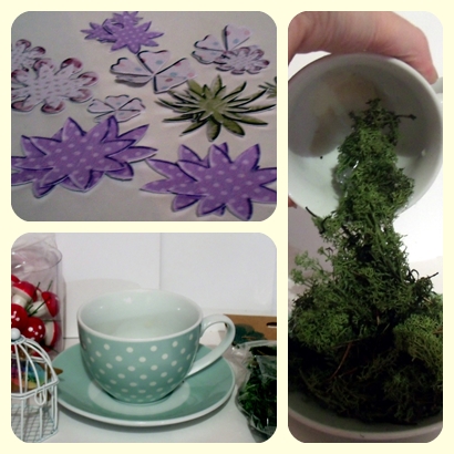 Tanya - Hello there.  I love flowers so much and there's many many of Nikky's wonderful collections that have flowers on them in all shapes, sizes and colours, some which are textured too.  For this week I've decided to use the flowers from the Eden Collection and the bird too and combine them with two of the coloured digis from the Octavia Moonfly Collection to make a little bit of teacup art work.  I don't know if you've seen these on the internet before but there's a step by step on my blog and here are some photos to show you how I made it.  (1) resizing the flowers and printing them out (2) decorating the teacup with the moss (3) and then decorating with the little toadstools, birdcage, mini shrink plastic Octavias and the bird from the Eden Collection.  If you want to know how the teacup seems to be floating above the saucer you'll have to pop over to my blog to find out what it is.  Hope you like it.